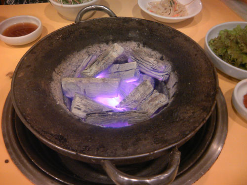 この上に網乗っけて焼肉でっせー。美味い!