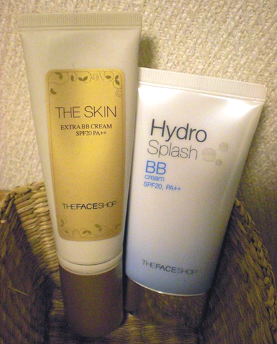元々使っていたのが写真左のザスキンエクストラBBクリームでして、これも同僚に指名買いしてきてもらったやつなんですが、新製品としてハイドロ~が出たのを知って買ってきてもらったのでした。